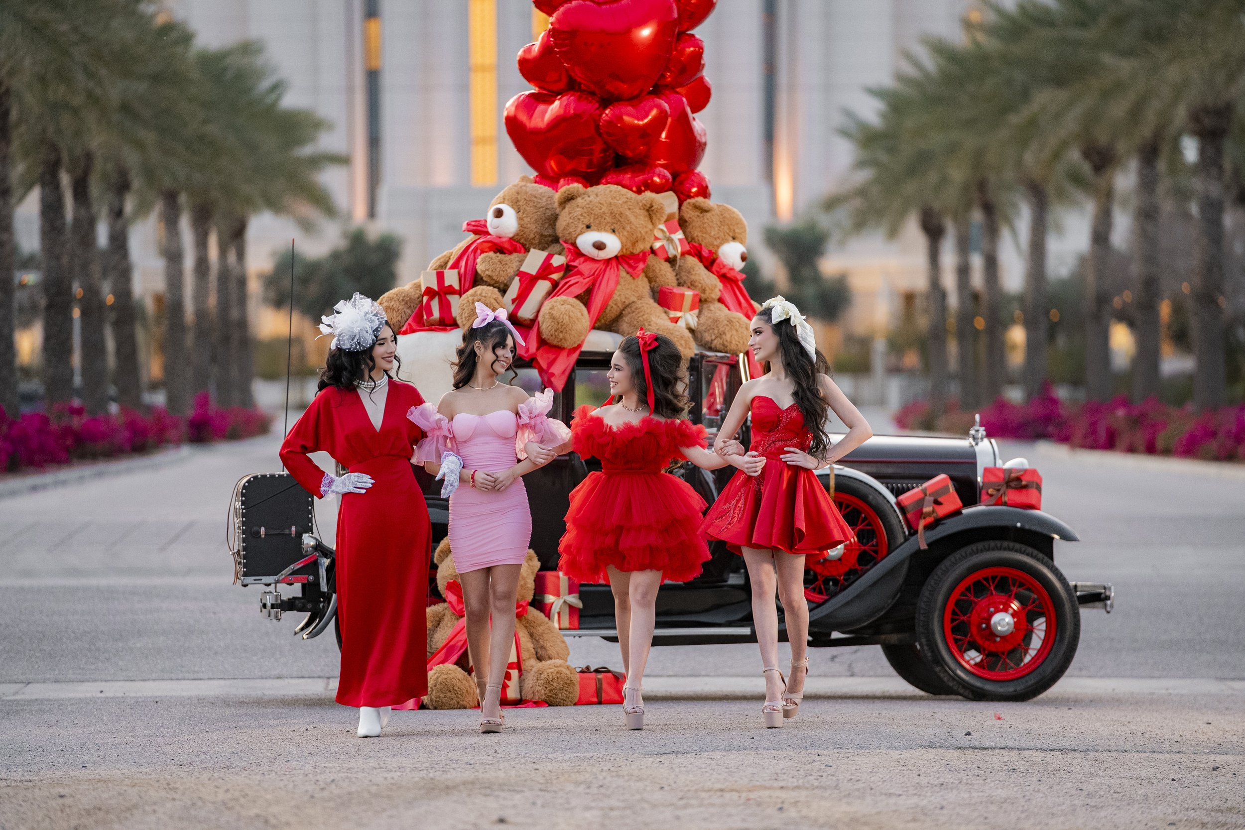 This wasn’t your typical “soft romance” Valentine’s shoot. It leaned bold and stylish - pulling from quinceañera-inspired glam and turning it up a notch.